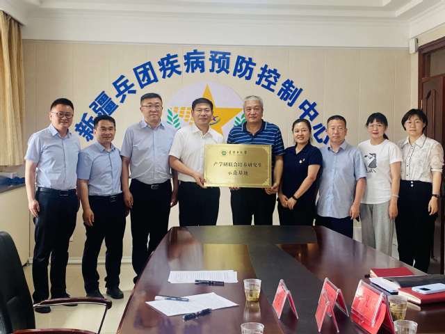 6月15日,云顶集团yd222党委副书记、院长马克涛,党委委员、副院长李思源,副院长王良海一行前往新疆生产建设兵团疾病预防控制中心进行石河子大学产学研联合培养示范基地挂牌。