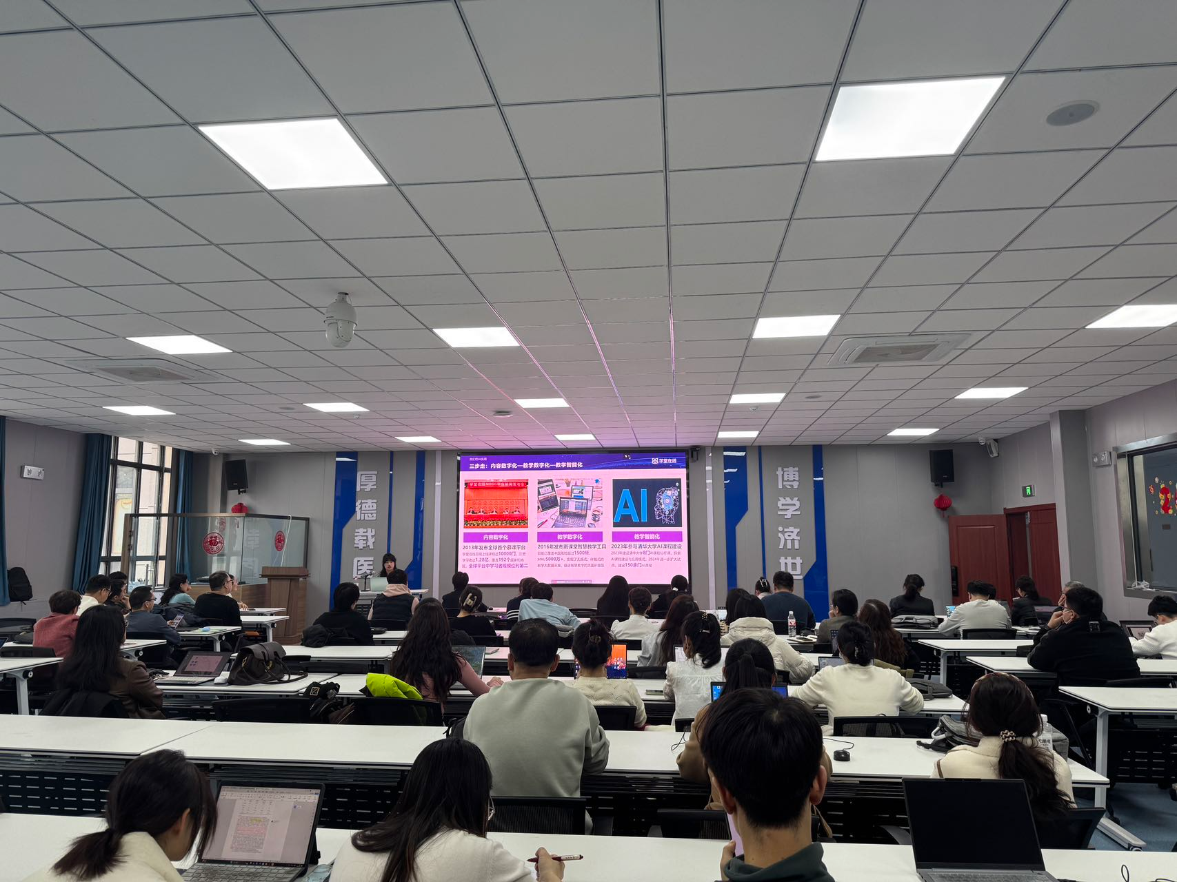 本次培训特邀学堂在线平台培训顾问孟玉婕担任主讲,围绕雨课堂新功能、自建课程与AI一键生成知识图谱、AI课程建设方法以及学堂在线AI课程解决方案等内容进行了深入分享。