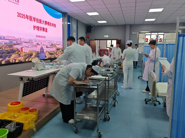 为参加新疆新医科教育联盟、新疆医学会举办的首届新疆医学生技术技能大赛,2025年4月24日下午,云顶集团yd222护理系在杏3-324举办护理学赛道模拟考核,检验学生的备赛情况。参赛选手为2024年校赛中获奖的两支参赛队伍。本次模拟考核邀请了护理系李萍老师、三附院护理部主任张琴老师,一附院消化内科岳娟老师、护理系倪志宏老师、姬春老师和韩静老师担任评委,同时组织护理2022级和2024级的学生进行观摩。