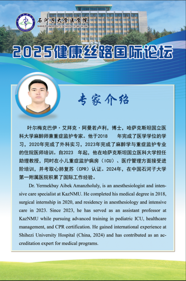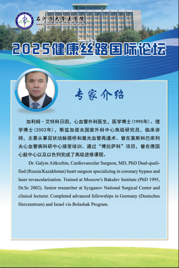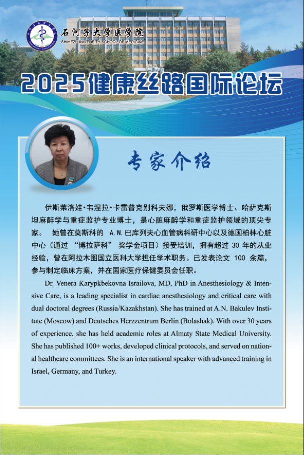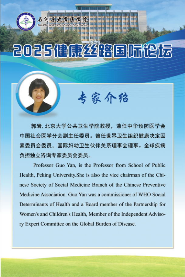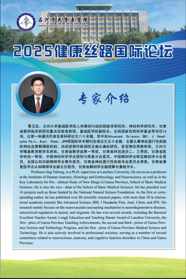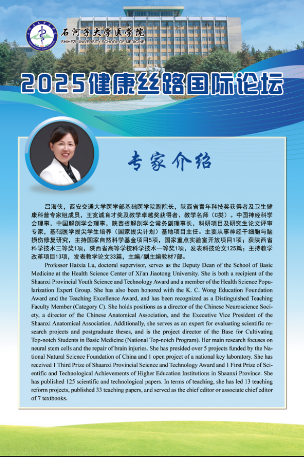 为深入践行 "一带一路 "倡议 ,推动 "健康丝绸之路 "建设, 由石 河子大学主办 ,石河子大学云顶集团yd222、石河子大学药学院、石河子大 学第一附属医院及石河子大学红花产业研究院承办的第一届“健康丝 路国际论坛” ,将于2025年5月17日在有“戈壁明珠”之称的新疆石河 子市举行。