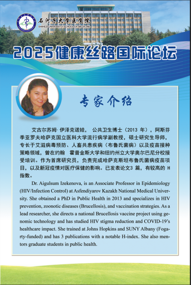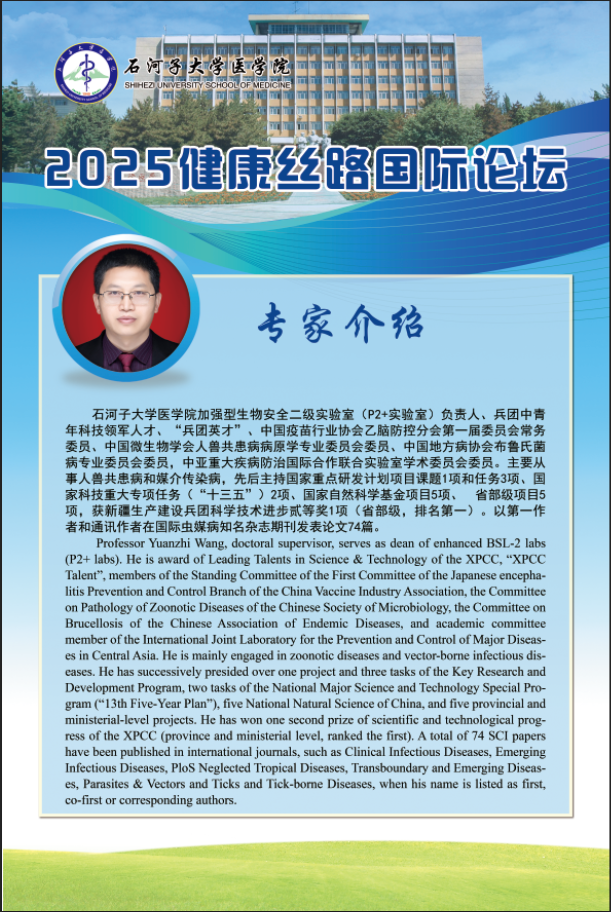 论坛以“聚焦中亚高发病 ,共筑健康新丝路 ”为主题, 围绕人畜 共患病、心脑血管疾病、跨境传染病等区域高发病 ,邀请中国、 哈 萨克斯坦、 巴基斯坦等国高校公共卫生、基础医学、药学领域的知 名专家学者, 围绕会议主题进行主旨报告 ,共同探索健康丝路建设 的新路径 。 让我们以本次论坛为纽带, 架设起连接中亚健康的桥梁。