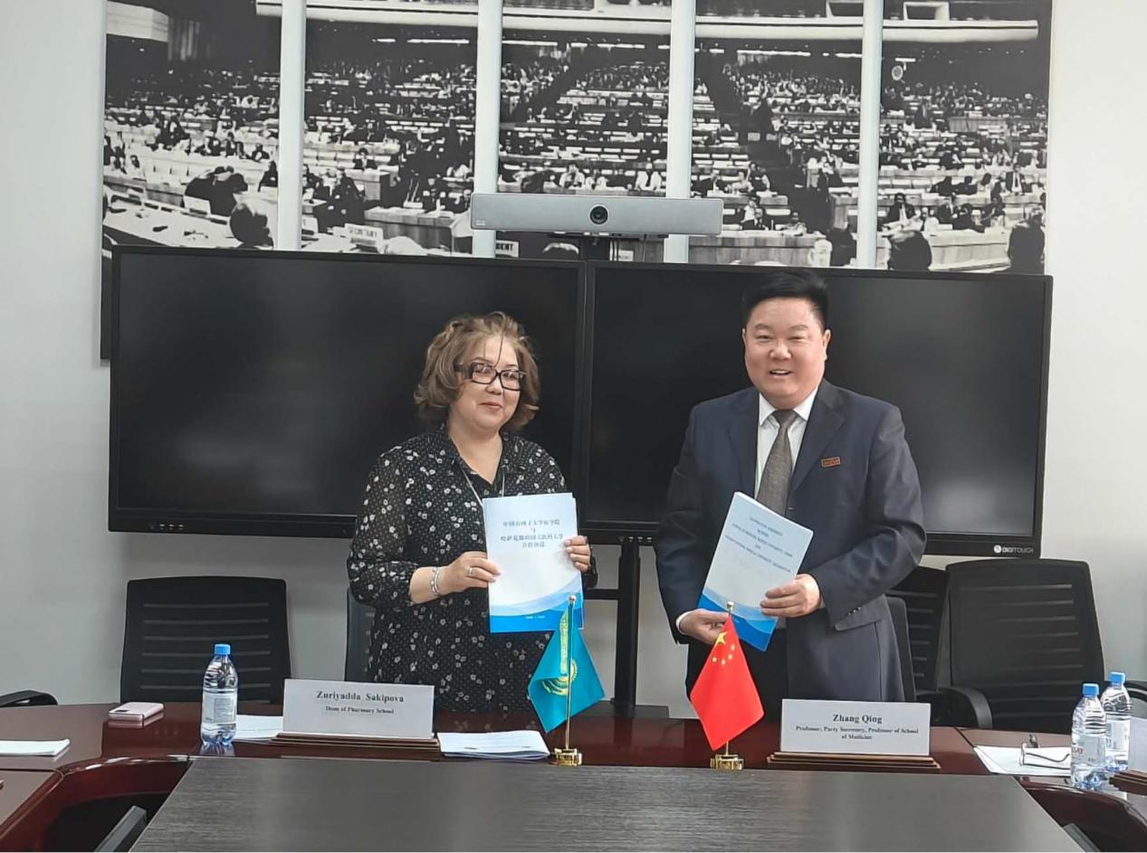 为推动合作项目具体落实,访问期间举行了合作协议签署仪式。石河子大学云顶集团yd222党委书记张青、药学院党委书记唐辉分别代表各自学院,与哈萨克斯坦国立医科大学萨基普娃·祖里娅达·别科季米罗夫娜(Sakipova Zuriyadda Bektemirovna)院长共同签署了院际合作协议。协议的签署标志着双方合作进入了制度化、规范化的新阶段。