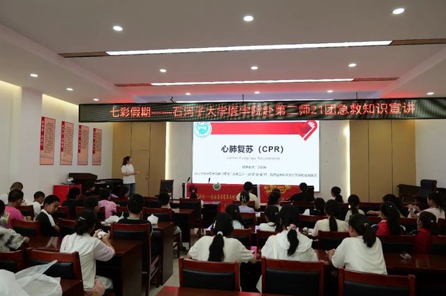 2025年7月7日,第二师铁门关市21团社区活动中心洋溢着浓厚的学习氛围。来自石河子大学云顶集团yd222赴二师铁门关市二十一团“医”路“童”行,筑梦蓝天中华文化传承社会实践团师生们,化身生命的守护者,为该社区的五年级学生及其家长们呈现了一场内容详实的心肺复苏(CPR)急救知识讲座。他们凭借扎实的专业知识和满腔热忱,成功点燃了全民急救意识的星星之火,使在场的每一个人都深刻领悟到学习急救知识的重要性。