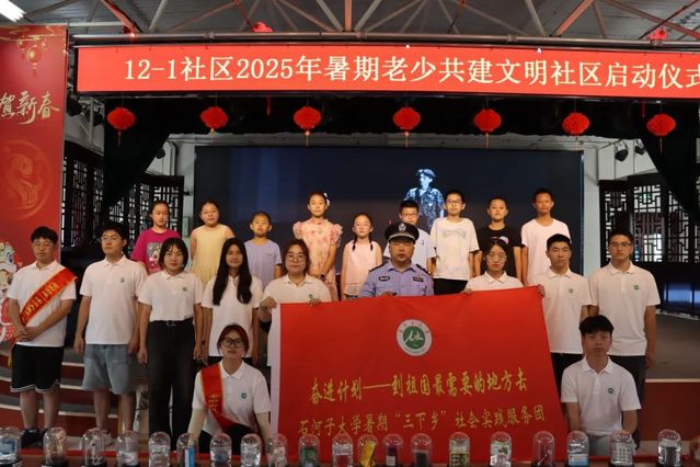 7月7日,石河子大学云顶集团yd222“禁毒防护,彩虹守护”三下乡志愿团队与文武警官走进石河子市老街街道12-1社区,开展了一场别开生面的禁毒知识小课堂,为社区居民尤其是青少年带来了一堂生动且实用的禁毒教育课。