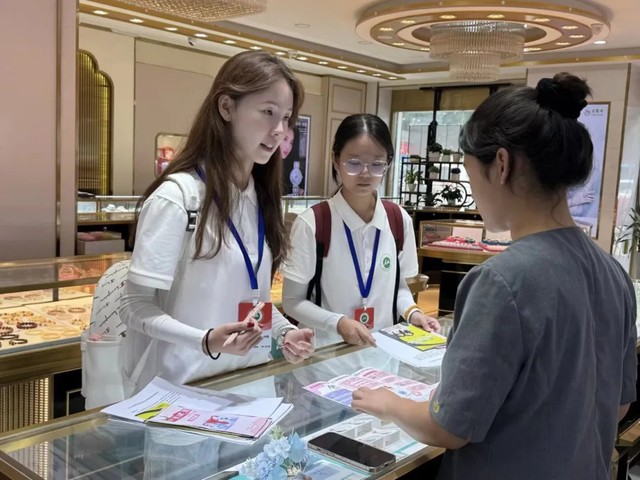 实践团成员在周边商铺进行宣讲 周沿铮供图