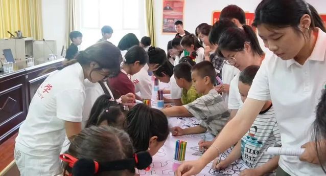 座谈会接近尾声,实践团兵分两路。两名成员跟随卫生服务站工作人员,协助开展听力筛查,凭借细心与耐心,为居民耳部健康“把关”;其余成员与小朋友们携手创作,围绕“中华民族一家亲,同心共筑中国梦”主题,以画笔绘就民族团结、青春奋进的多彩画卷,传递美好愿景。