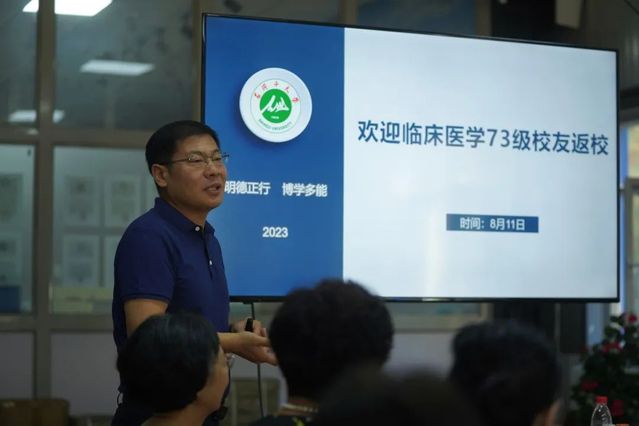 8月11日,在入学50周年之际,我院临床医学专业73级校友专程返回母校相聚,并在杏5楼教师发展中心举行座谈。学院党委副书记、院长马克涛,党委副书记于磊出席座谈。
