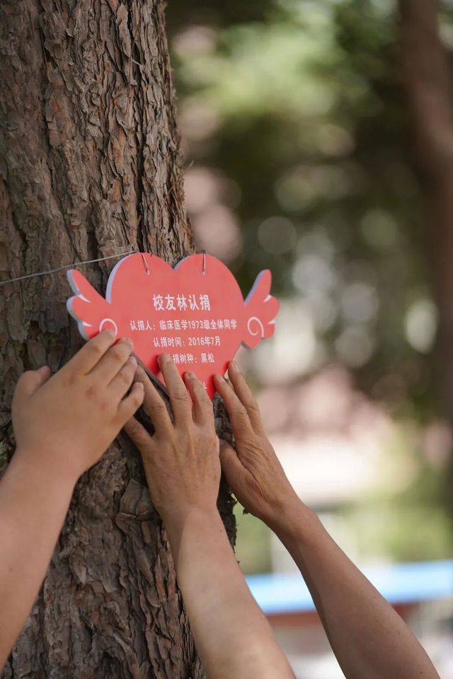 校友树前培土、浇水,祝愿母校如松柏长青。