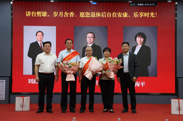 第三环节以“表彰先进,致敬芳华”为主题,左彭湘副院长宣读了我院2025年上半年在教育教学、科学研究、管理服务等方面取得优异成绩的获奖教师名单,学院领导为获奖者颁发了荣誉。随后,党委书记张青为银龄教师献上鲜花,感谢他们不远万里支援西部教育,将宝贵经验和智慧倾囊相授,为学院发展注入了强劲动力。