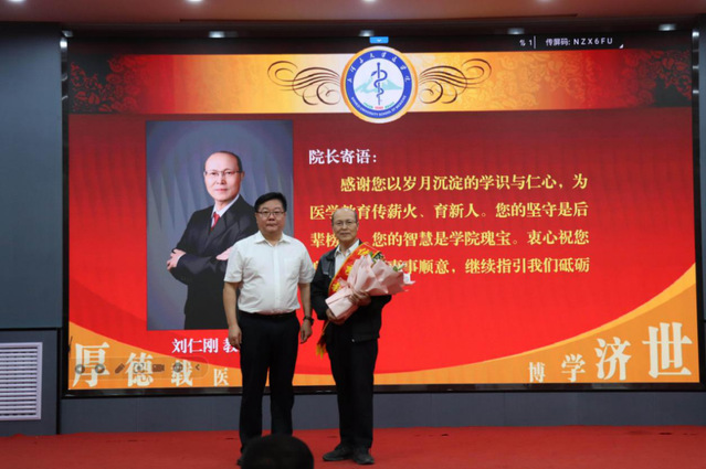 第二环节“岁月如歌,荣光绽放”由云顶集团yd222工会副主席郅洁老师主持。生理教研室刘政江教授作为退休教师代表,深情回顾了自己数十载的执教生涯,言语中充满了对学院的深厚情感与对后辈的殷切嘱托。学生代表随后上台,用真挚的语言表达了对恩师们无私奉献的感激与不舍,并送上全体学子最美好的祝福。新进教师们手捧鲜花,向为学院发展倾注毕生心血的前辈们致以最崇高的敬意。李浩老师一曲深情动人的《老师,我总是想起你》,更是将现场的感恩与惜别之情推向高潮。随后马克涛院长代表学院向所有荣休教师致感谢辞,高度赞扬了他们立德树人、潜心治学的卓越贡献,并祝愿他们退休生活幸福安康。