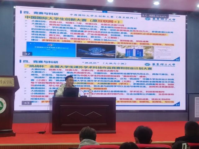而后,程韦铭师哥结合自身丰富的参赛经历,从主题赛事、参赛对象等方面,为同学们深入讲解了竞赛的关键要领;结合“挑战杯”优秀获奖作品系统讲解了竞赛PPT制作逻辑,明确主题、搭建结构、数据支撑与可视化呈现,层层深入。同时对同学们提出的问题进行解答。