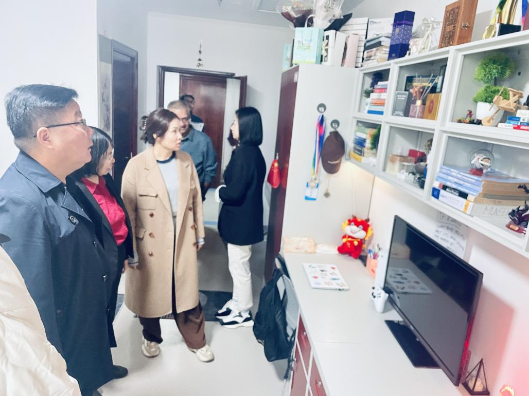 为进一步了解我院来华留学生学习生活及宿舍卫生安全,10月15日下午,党委书记张青、副院长孙玉梅带领留学生办公室工作人员,前往“一带一路”国际教育中心,深入留学生宿舍,实地了解留学生在宿舍的学习、生活等情况,为留学生送去关心和问候。