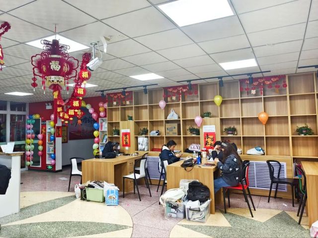 经过同学们的精心布置,宿舍楼大厅焕发出全新的节日光彩。大厅中央“福”字拉花与灯笼相映成趣,墙面装饰错落有致,特别是通道口处用彩色气球搭建起的拱门造型,五彩缤纷的气球与醒目的红色中国结相互映衬,整个空间洋溢着温馨喜庆的迎新氛围,为同学们构筑了一个充满仪式感的节日空间。